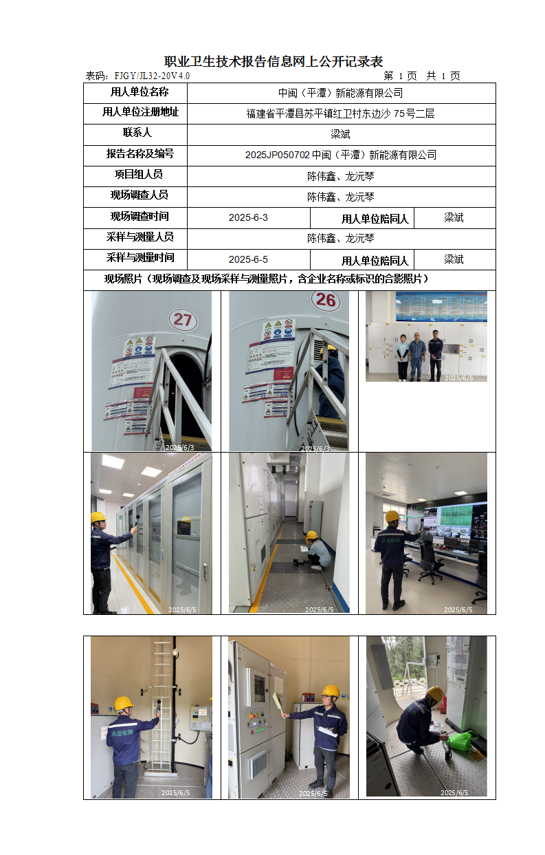 中閩(平潭)新能源有限公司-2025年工作場(chǎng)所職業(yè)病危害因素檢測(cè)