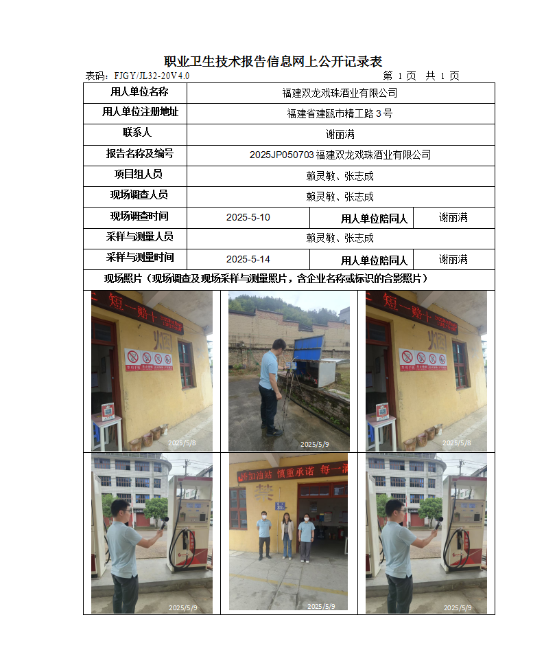 福建雙龍戲珠酒業(yè)有限公司-2025年工作場所職業(yè)病危害因素檢測