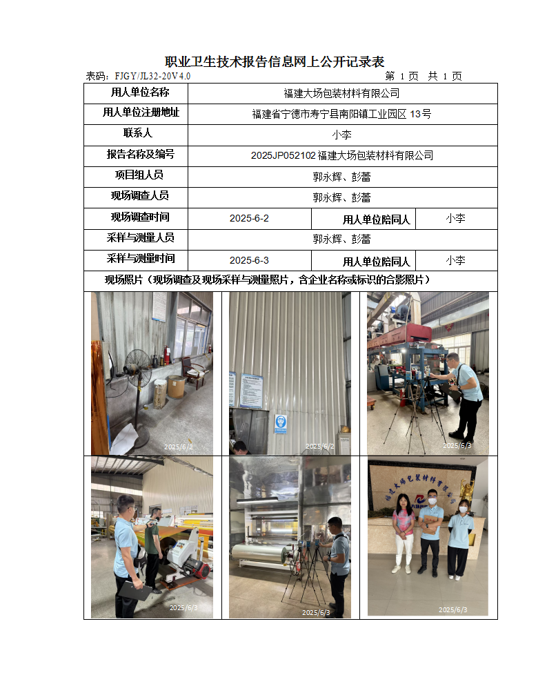 福建大場包裝材料有限公司-2025年工作場所職業(yè)病危害因素檢測