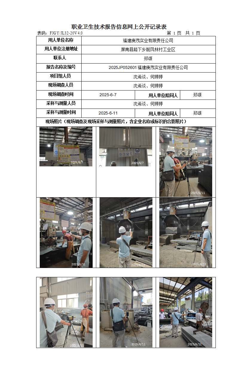 福建庚茂實業(yè)有限責(zé)任公司-2025年工作場所職業(yè)病危害因素檢測