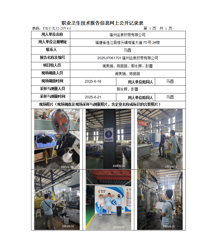 福州運泉織帶有限公司-2025年工作場所職業(yè)病危害因素檢測