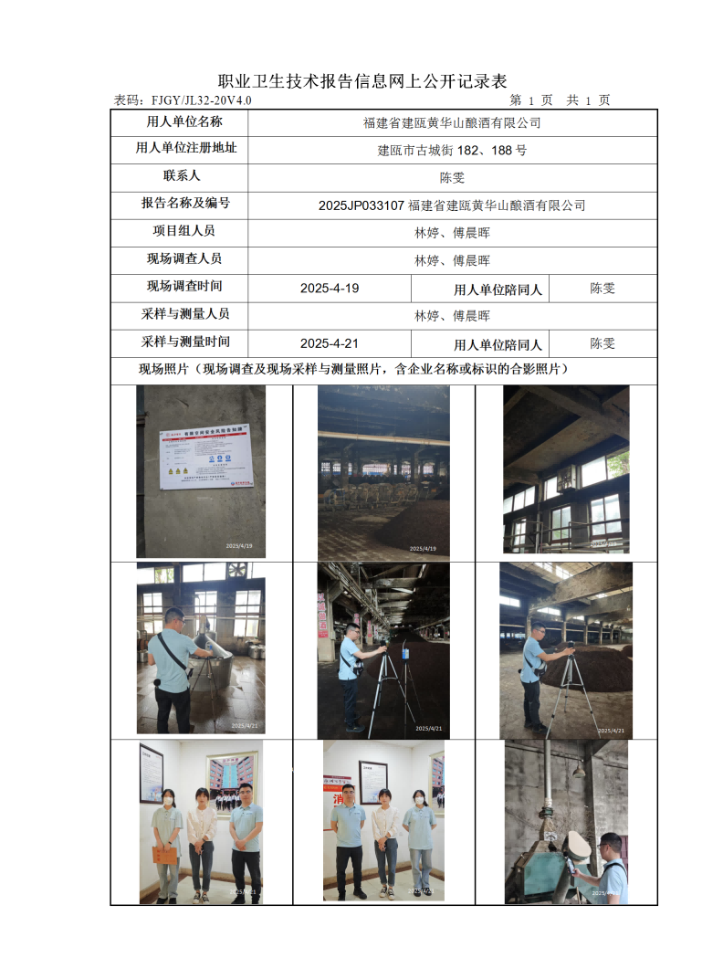 福建省建甌黃華山釀酒有限公司-2025年工作場所職業(yè)病危害因素檢測