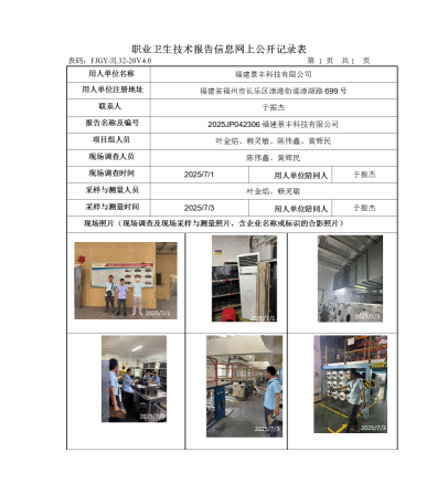 福建景豐科技有限公司-2025年工作場(chǎng)所職業(yè)病危害因素檢測(cè)
