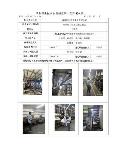 福建新創(chuàng)錦綸實(shí)業(yè)有限公司-2025年工作場(chǎng)所職業(yè)病危害因素檢測(cè)