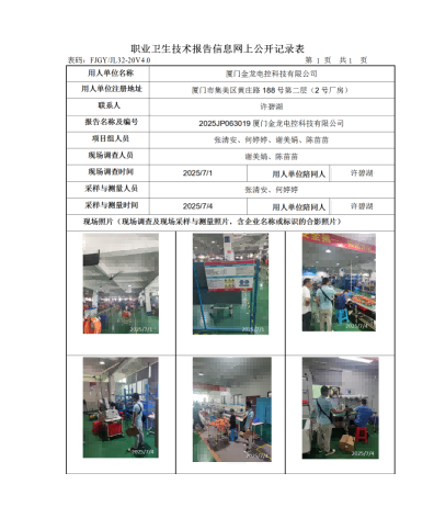 廈門金龍電控科技有限公司-2025年工作場所職業(yè)病危害因素檢測