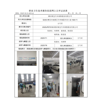 莆田錦寶汽車銷售服務有限公司-2025年工作場所職業(yè)病危害因素檢測
