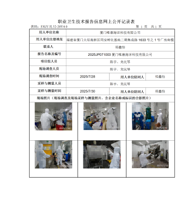廈門(mén)唯康海洋科技有限公司-2025年工作場(chǎng)所職業(yè)病危害因素檢測(cè)